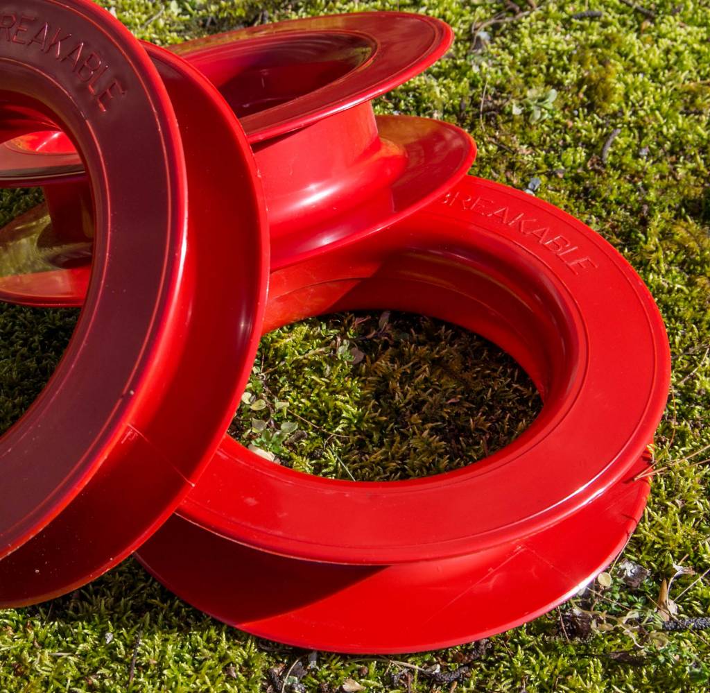 The Shanti Hoop winder is the preferred way to handle line for most kite aerial photographers. Simple and strong, the eight inch ABS winder holds at least 500 feet of 150 or 200 pound line.
