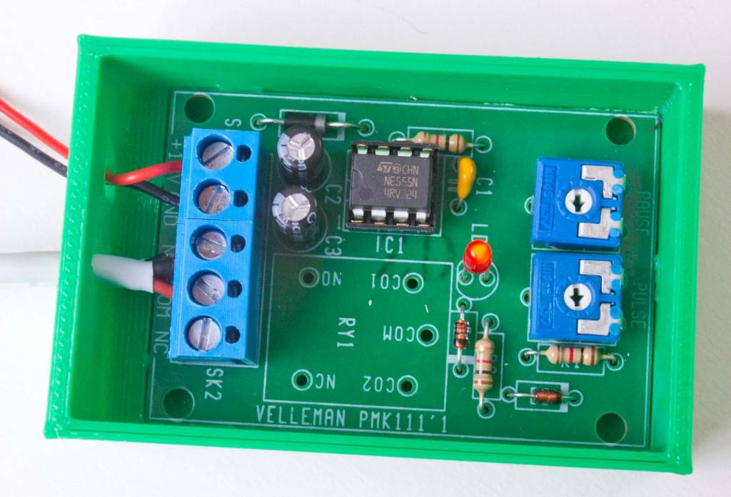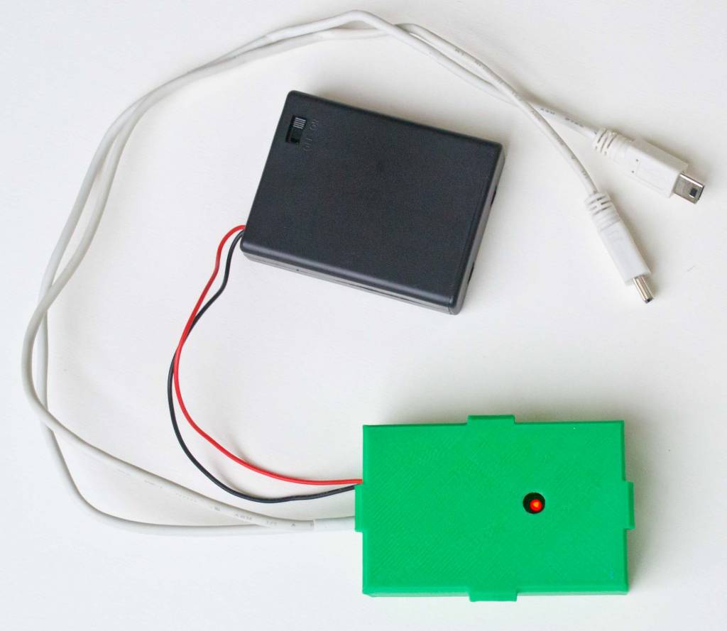 Includes timer, 3D printed enclosure, battery box with on/off switch (for four alkaline AAA, not included), two Mini-B USB cables, two Velcro ties, Velcro tape, and the MK111 assembly and specification sheet. Completely assembled and tested. Total weight with batteries is 125 grams.