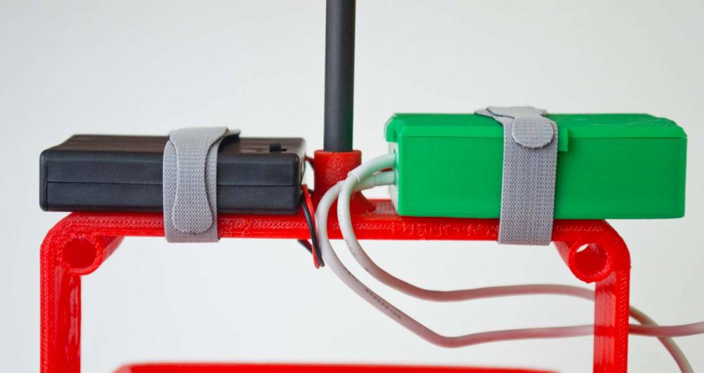 - Velcro straps are supplied for the battery case and timer case. Wrapping a strap around the case and the frame of the aerial camera rig is important to secure the case during flight. Velcro tape on the frame and the bottom of the cases make them more secure.
