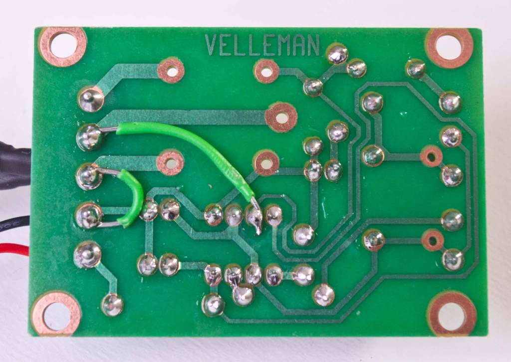 - On the underside of the PCB solder two jumper wires as shown in the photo above.